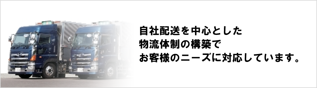 自社配送を中心に運送会社との連携で小口から大口配送まで対応した物流体制を構築しています。 ロット単位での管理体制で製造履歴との情報共有により製品の追跡が可能です。